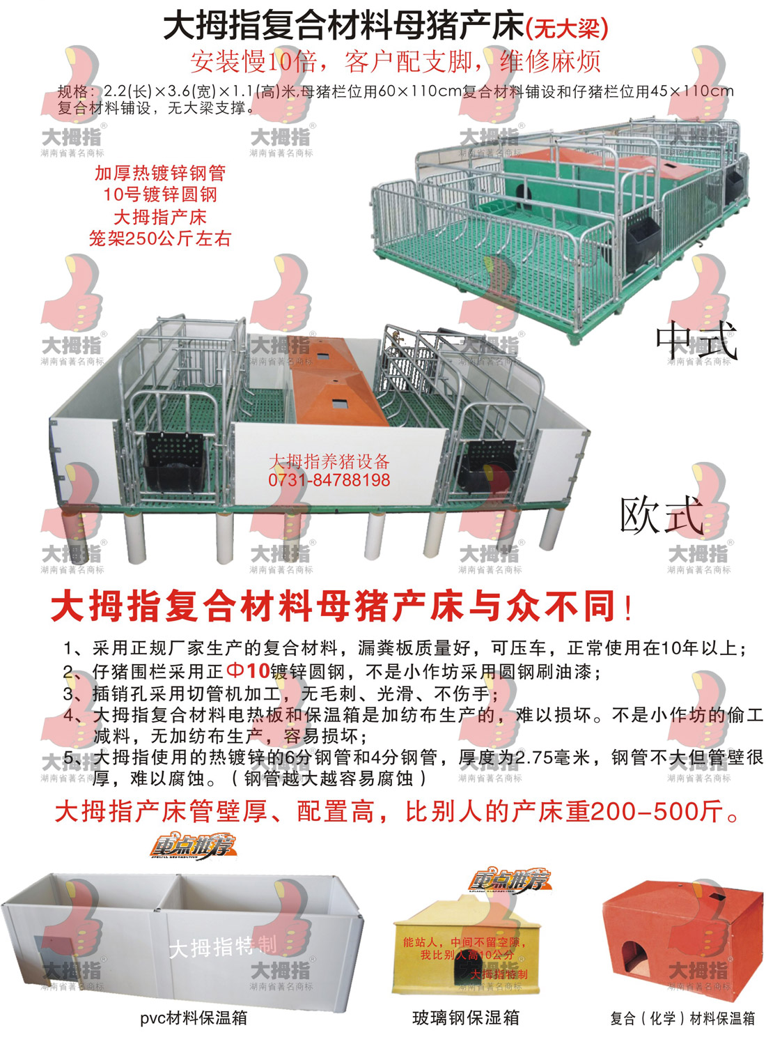 大拇指復合材料母豬產床(無大梁)